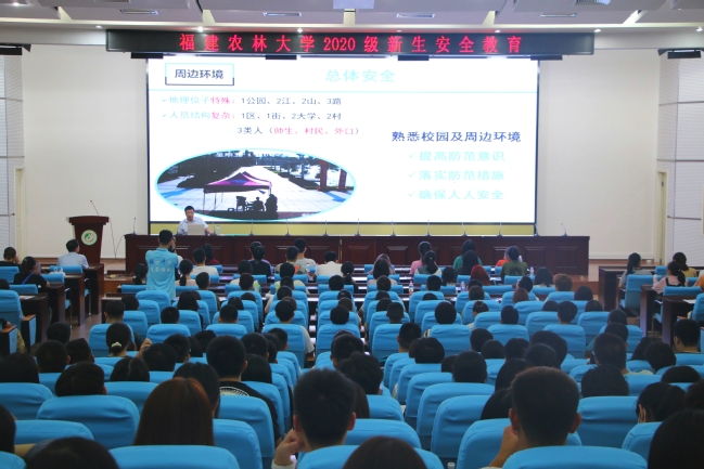 9月22日晚,经济学院在禧强楼学术报告厅举行2020级新生入学安全教育会。保卫处黄锦湖老师应邀主讲,出席本次会议的有学院党委副书记李健英、新生辅导员、助理班主任以及2020级全体新生。