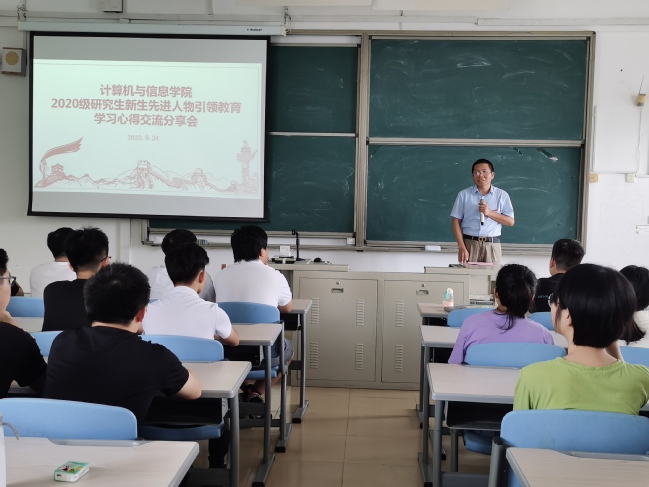 9月24日下午,计算机与信息学院于创新楼516教室召开2020级研究生新生先进人物引领教育学习心得交流分享会,学院副院长刘金福教授、研究生导师代表柳晓龙副教授、研究生辅导员黄维以及全体2020级硕士研究生参加了分享会。