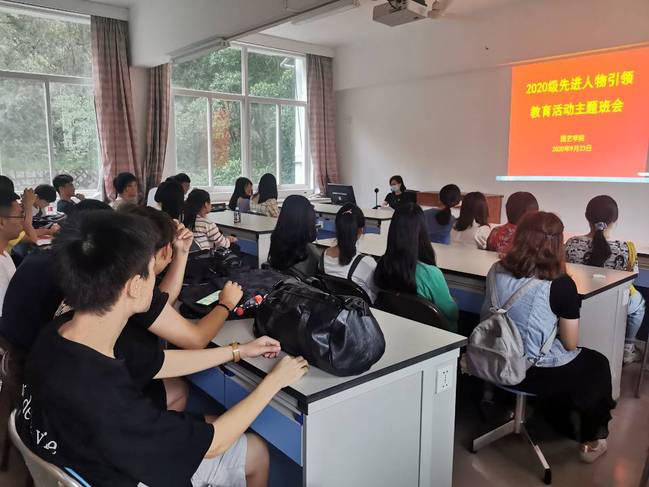 集中学习后,学院第一时间组织全体新生以班级为单位,召开先进人物引领教育主题班会,讨论分享交流观看先进人物事迹后的体会。学院党委班子肖红新、陈清西、周娟娟、曾黎辉、郭玉琼全部深入学生班级,参加并指导主题班会活动的开展,与学生亲切交流,气氛热烈。