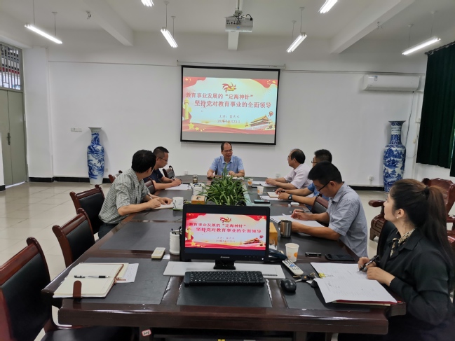 9月23日下午,林学院党委召开理论学习中心组专题学习研讨《习近平总书记教育重要论述讲义》第一讲“坚持党对教育事业的全面领导”。学院党委书记蓝天水主持会议,理论中心组成员参加会议。