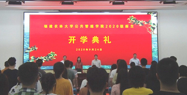 9月24日上午,公共管理学院于禧强楼学术报告厅召开2020级新生开学典礼。本次开学典礼采取线上和线下相结合的方式。现场参加典礼的有公共管理学院党政领导、各系主任、班主任、辅导员、研究生及本科生新生合计390多人,另有124位公共管理硕士(MPA)通过在线的方式收看了本次开学典礼。典礼由学院党委副书记郑龙章主持。