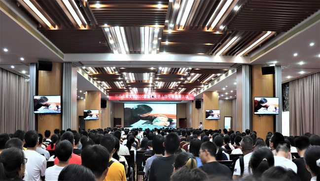 9月23日下午,资源与环境学院组织2020级新生在博学报告厅集中观看先进人物引领教育活动学习视频。