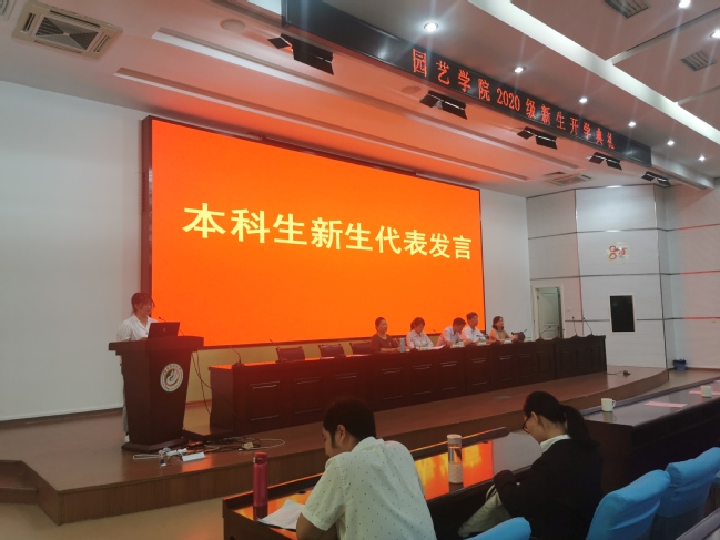 本科新生代表2020级园艺吴卉芳发言,表达了作为一名新生对农林大和农林大精神品格的认知,表示将刻苦学习,携手拼搏,担当时代重任,践行校训精神。