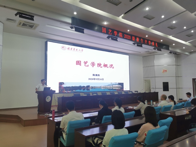 9月24日,园艺学院在禧强楼学术报告厅举行2020级新生开学典礼。院党委书记肖红新,院长陈清西,院党委副书记周娟娟,副院长曾黎辉、郭玉琼,各学科主任、系主任,各年级辅导员、新生班主任,2020级全体本科生、研究生参加开学典礼。开学典礼由周娟娟主持。