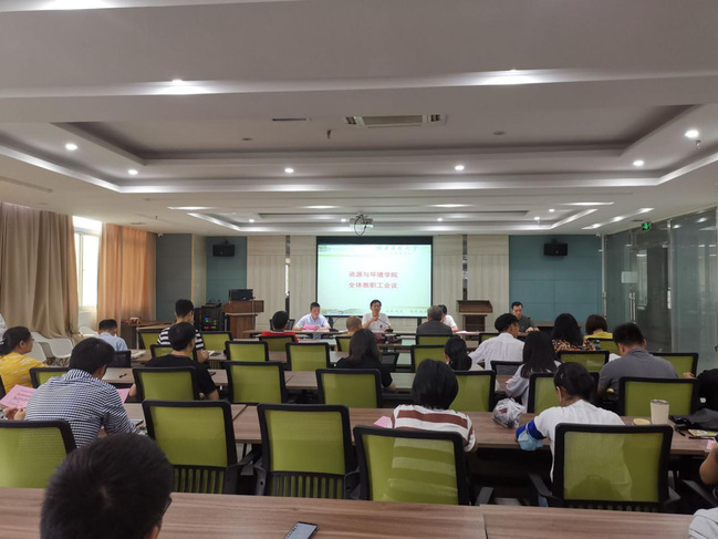 9月24日,资源与环境学院召开了全院教职工大会。学院领导班子、教职员工参加会议,会议由院党委书记童庆满主持。