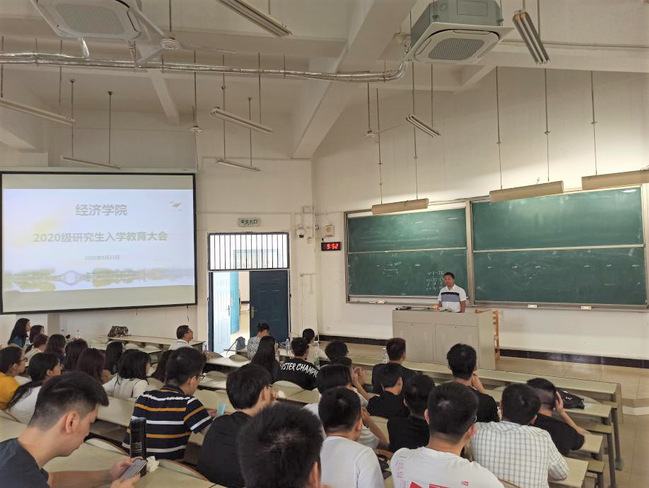 9月23日上午,经济学院于创新楼202室召开2020级研究生入学教育大会,副院长管曦,研究生教务员马瑛、杜金苓老师,研究生辅导员潘荣艺及2020级全体研究生出席了会议。