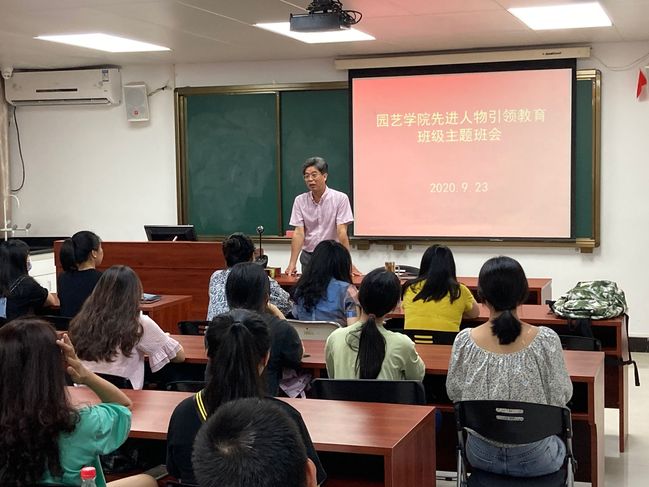 9月23日下午,园艺学院在集中学习后,第一时间组织全体新生以班级为单位,召开先进人物引领教育主题班会,讨论分享交流观看先进人物事迹后的体会,学院党委班子集体深入学生班级。学院党委书记肖红新在班会上对同学们提出四点希望:大力弘扬爱国主义精神,增强作为中华民族儿女的自尊心、自信心和自豪感;坚持爱党与爱国爱社会主义相统一,坚定不移地听党话、跟党走;要心存感恩之心,常怀报国之志,把学习奋斗的目标同民族复兴的目标相统一来,努力成为知农、爱农,学农、兴农的新型人才;要保持奉献的心态、争先的状态,不畏难不怕苦,顽强拼搏,始终坚定自己的奋斗方向,让自己的大学生活过得充实有意义。院长陈清西参加了研究生新生主题班会,希望广大园艺学子能够始终以爱国奋斗为基调,敬仰先进、学习先进、争做先进,作为农林类专业研究生,要肩负“三农”梦,牢记农林大人的“初心”,坚定强农兴农、献身“三农”的人生志向,不断砥砺奋进。主题班会上,同学们各抒己见,积极发言,分享心得体会。