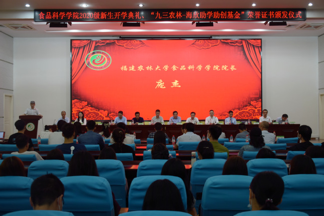 9月27日下午,食品科学学院2020级新生开学典礼在禧强楼学术报告厅举行,第十一届福建省政协副主席陈绍军、副校长郑宝东、学院党政领导、新生班主任及2020级全体研究生、本科生新生参加典礼。院党委书记苏健涵主持典礼。