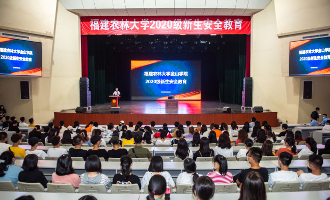 9月22日晚上,金山学院2020级新生安全教育大会在校大学生活动中心举行。福建省公安厅刑侦总队六支队二级警长、部聘打击电信网络诈骗犯罪专家梁剑山警官应邀担任主讲。全体新生及辅导员、学生处相关人员参加会议。院党委副书记李晓辉主持会议。