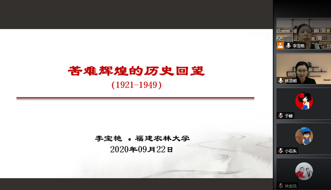 马克思主义学院副院长李宝艳以中国共产党苦难辉煌的历史回望为主题,从“理论维度:中国共产党指导思想的确立与发展”“实践维度:中国共产党民族复兴的使命与践行”“经验总结:中国共产党小米加步枪的决策与智慧”三个角度,重点分析了1921年至1949年中国共产党牢记初心、坚守使命的苦难辉煌的历程。全国思想政治理论课教学骨干、福建省高校青年教学名师黄秀玲从“历史新纪元”“社会主义制度确立”“社会主义艰辛探索”“历史重大转折”“社会主义市场经济”“全面小康与民族复兴”六个维度梳理了新中国成立71年来的基本历史脉络和基本历史规律,总结了社会主义发展的历史启示。两位教师在系统梳理党史、新中国史中,特别注重挖掘了福建红色文化,引导教师们用好福建红色资源,讲好福建红色故事。