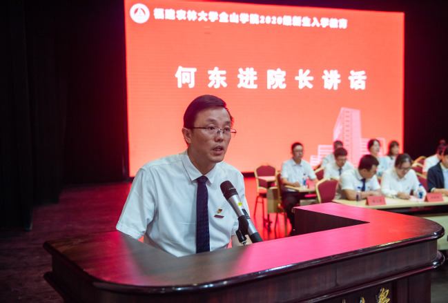 院长何东进简要介绍了学院办学理念、办学历史和办学规模以及2020年招生录取情况和学院文化特色,希望同学们在新的起点、新的环境,要树立高远志向、勇挑时代重任,奋力书写人生崭新篇章;要厚植家国情怀、塑造高尚品格,脚踏实地、仰望星空,努力做一个有大德大爱大情怀的“大写之人”;要保持好奇心、追求卓越品质,牢记大学求知问学的使命任务,不负韶华、科学规划、勤于学习、敏于求知;要守护住初心、矢志拼搏奋斗,在永续奋斗中尽情绽放最美青春、发现最好自我、创造最大辉煌。