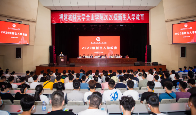 9月25日,金山学院2020级新生入学教育大会在校礼堂分三个场次举行。校长兰思仁,院领导班子成员,机关各部门、有关单位主要负责人,各系(院)党政主要负责人出席会议并于主席台就座。2020级新生及辅导员2800人左右参加会议。