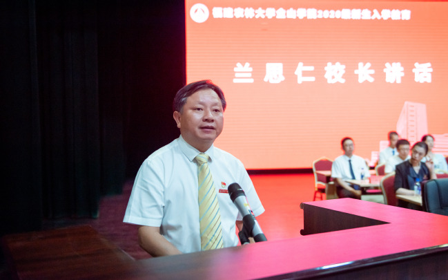 兰思仁代表学校全体师生员工,向各位新同学的到来表示热烈的欢迎和衷心的祝贺。他指出,2020级新同学是经受住新冠肺炎疫情考验,在激烈竞争中脱颖而出的佼佼者,也是学院不断走向辉煌的新希望,同学们要肩负起传承农林大精神追求和文化品格的崇高使命,在新的征程上与学院同奋进、共成长;他希望广大新同学要立鸿鹄志,涵育家国情怀,自觉把个人梦和中国梦紧密结合,在感悟时代、紧跟时代中珍惜韶华,自觉按照党和人民的要求提升综合素质;要做奋斗者,厚植生命底蕴,养成主动学习能力、终身学习习惯,保持定力、经受诱惑,追求目标不停步;要当多面手,铸造能力硬核,以德育扬善、以智育启真、以体育强身、以美育塑心、以劳育立行。