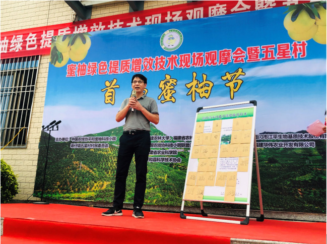 近日,资环学院国际镁营养研究所参与主办蜜柚绿色提质增效技术现场观摩会暨首届五星村蜜柚节在平和县坂仔镇五星村举行。省农技协理事长、中国农技协科技小院联盟副理事长吴瑞建,平和县副县长王振惠,我校新农村发展研究院副院长朱朝枝,中国农业大学李春俭教授以及资环学院党委书记童庆满等领导、专家出席活动。