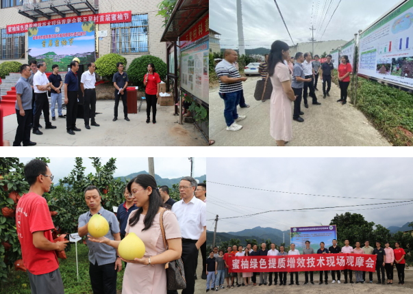 与会人员现场观摩了平和蜜柚科技小院建设的蜜柚绿色提质增效长期定位示范试验地,现场了解科技小院的运作模式、科技成果转化、目前的研究成果等情况,并就蜜柚提质增效和绿色发展进行交流讨论。科技小院蜜柚绿色提质增效技术推广示范工作得到了与会人员的高度评价,并对学院依托平和蜜柚科技小院为载体,长期深扎一线,在服务基层产业发展中推进研究生人才培养的模式予以高度肯定。