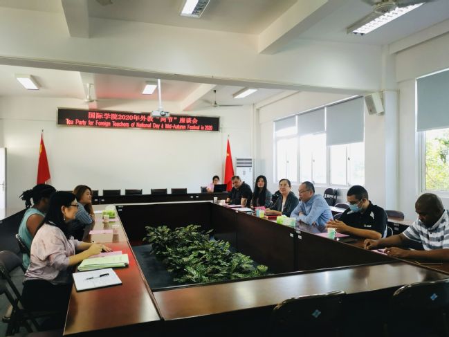 9月30日下午,国际学院召集全体外籍教师在院办303会议室举办中秋座谈会。学院党委书记张华英、副院长刘敏、英语系教师代表及外教管理人员出席了会议。