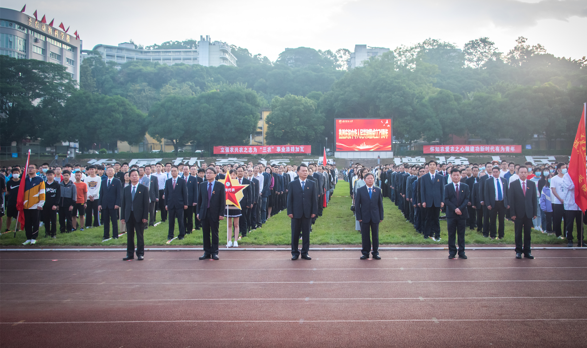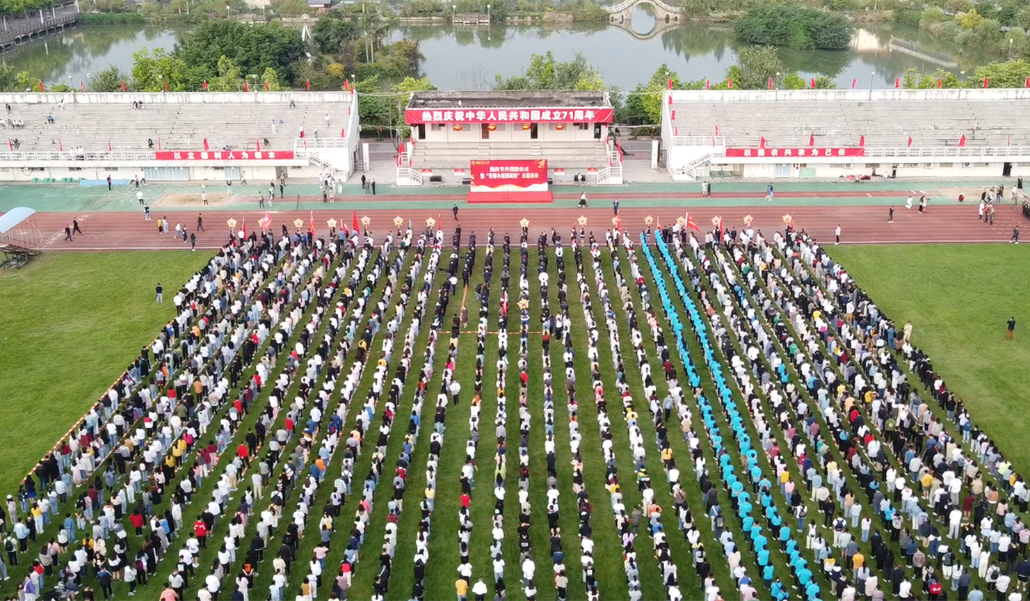 10月1日,我校在金山校区北区田径场隆重举行庆祝中华人民共和国成立71周年升旗仪式。