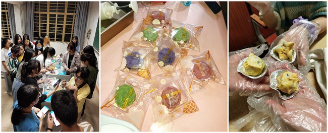 在“金秋寻香,‘饼’承情怀”活动中,大家撸起袖子跃跃欲试,学习体验了拌馅、揉皮、烘烤等流程制作出来了香甜可口的月饼,体验到了指尖上的传统习俗。同学们在认真学习制作月饼的同时,还相互介绍家乡独有的中秋风俗,加深了彼此之间的感情。