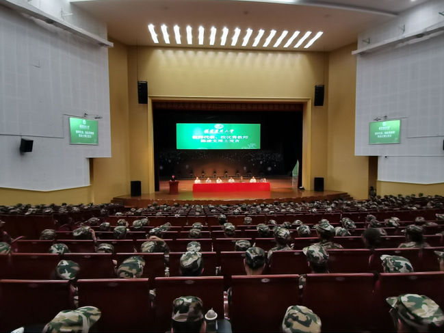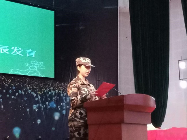 驻训部队学生军训团团长蔡福阳致辞,希望同学们在接下来的学习生活中,能严格要求自己,保持军训期间的优良作风,努力迈好大学的第一步。