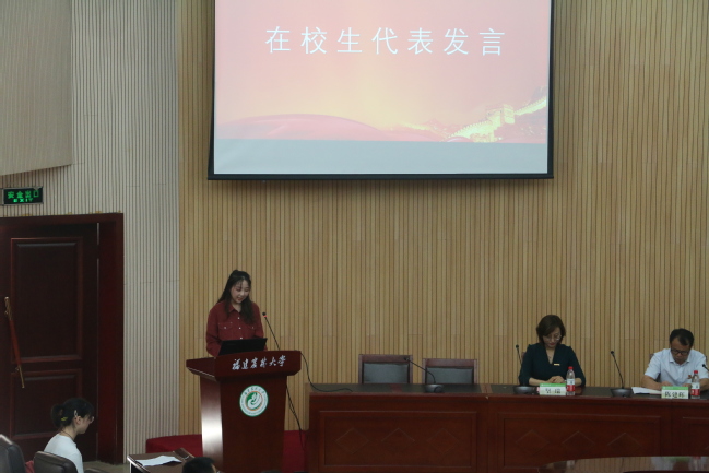 随后,教师代表阮晨晗、在校生代表江慧琳、新生代表郑晗钰分别发言。