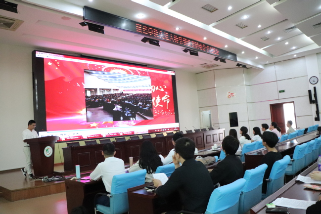 分享交流会在全体师生齐唱国歌中拉开了序幕。与会人员观看了学院开展先进人物引领教育活动影集,全面回顾了新生入学以来学院师生开展先进人物引领教育活动两个阶段集中学习和分班研讨的情况。9位新生代表结合自身实际畅谈个人学习先进人物的体会,分享交流了学习心得。