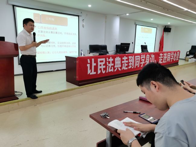 10月1日上午,公共管理学院于公管楼201会议室开展民法典宣传普法讲座,本次讲座由学院法学系主任陈文兴副教授担任主讲。