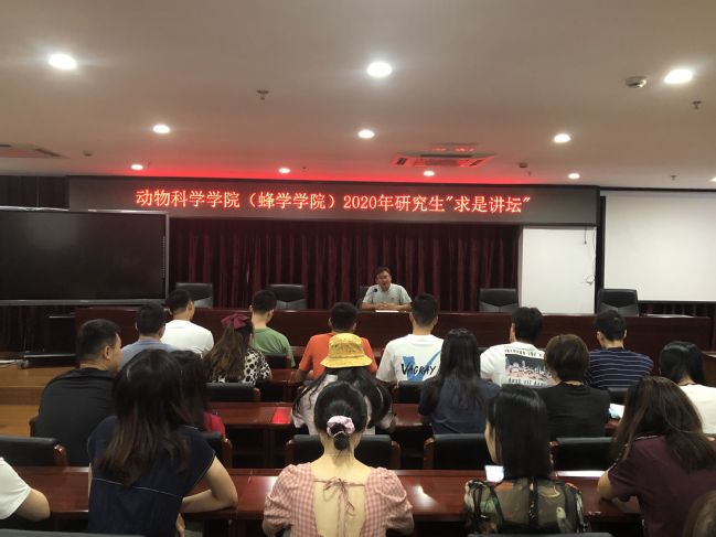 10月2日和4日,学院在会议室分别举办学术论坛和求是讲坛,深入学习习近平总书记关于教育重要论述精神,本科生和研究生共100余人参加,研究生辅导员郑罡主持。2018级特种经济动物饲养专业杜宇同学为大家作学习经验分享,副院长陈大福为大家作研究创新与学术道德的分享交流,强调要严守学术道德,恪守学术规范,勤奋求知,刻苦钻研,为强农兴农作贡献。