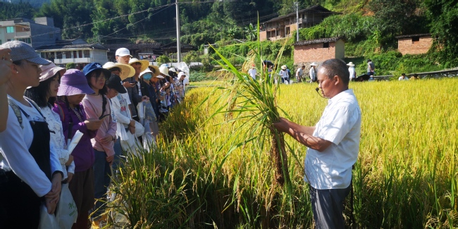 10月2日,植物保护学院2017级植物保护(严家显班)55位同学在尤溪县梅仙镇下保村千亩再生稻田,在全国先进工作者、省劳模、尤溪农业农村局高级工程师卓传营和学院9位指导教师带领下生产劳动。