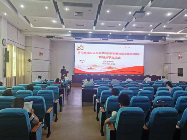 10月7日下午,公共管理学院在禧强楼学术报告厅召开学习贯彻习近平总书记教育重要论述第一场专题分享交流会。学院5位教师代表围绕“教育事业发展的‘定海神针’——坚持党对教育事业的全面领导”主题分享学习心得。学院全体教职工参加分享交流会,学院党委书记曾起郁主持会议。