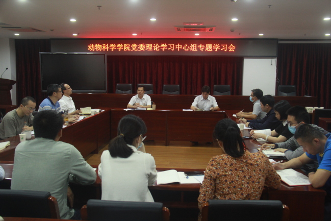 10月7日,动物科学学院党委在学院会议室召开理论学习中心组专题学习会。学院党委委员、部分党支部书记、科级干部和辅导员参加了学习会。会议由学院党委书记黄毅军主持。