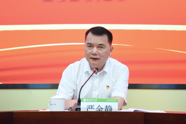 10月8日下午,我校在禧强楼学术报告厅召开学习贯彻习近平总书记教育重要论述专题学习研讨首场校级分享交流会,校领导及中层干部代表围绕“教育事业发展的‘定海神针’——坚持党对教育事业的全面领导”这一主题,结合自身学习和工作实际分享了学习心得和体会。校党委书记严金静主持会议并讲话。校党委副书记、校长兰思仁,校党委副书记庄祥生、曾华平,校纪委书记邱应龙,校党委常委、副校长黄炎和,副校长郑宝东出席会议。