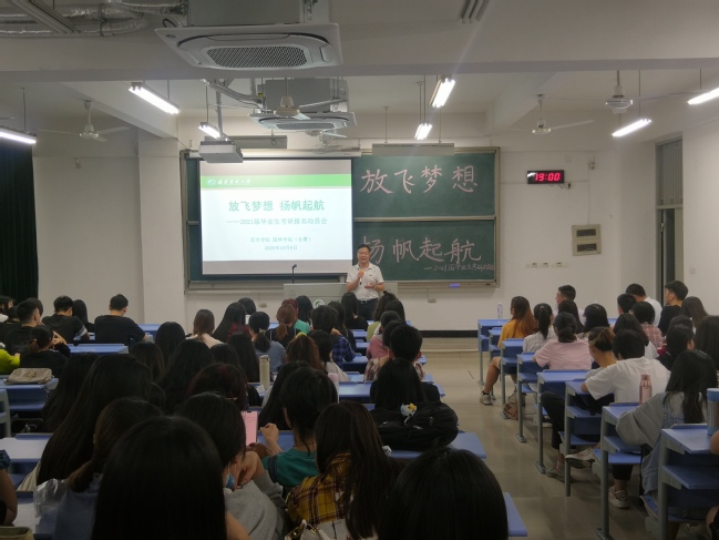 10月8日晚上,艺术学院园林学院在金山校区诚A-302教室组织召开“放飞梦想,扬帆起航”2021届毕业生考研报名动员会,学院党委书记陈为德、院长张飞萍出席会议并作动员讲话。会议由学院党委副书记曾海滨主持。