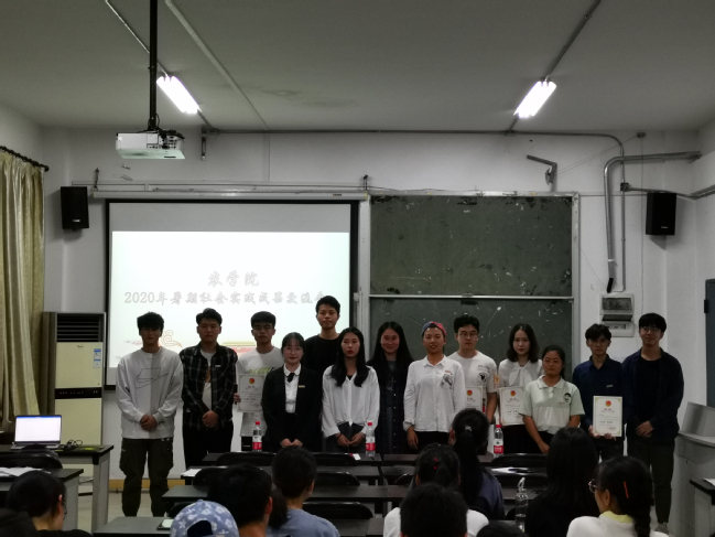 会上,9支实践队按顺序进行了分享,分别从实践队组队情况、实践内容、活动成果、实践感悟等方面对实践活动进行了介绍。通过展示,评委评分,有5支队伍获得学院“五佳”社会实践队称号。
