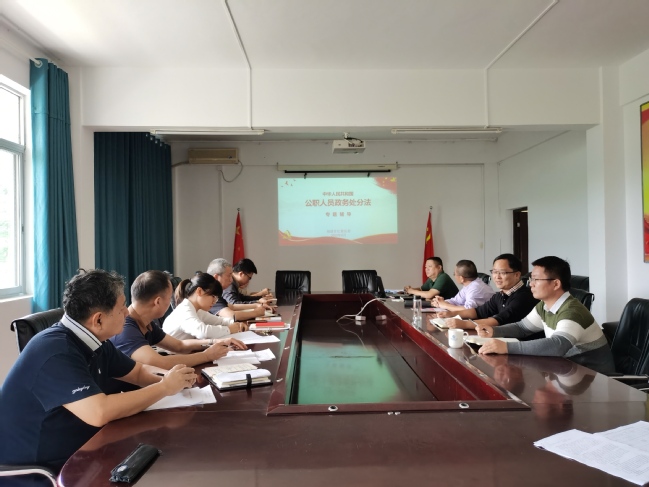 10月13日上午,计算机与信息学院党委理论学习中心组专题学习《中华人民共和国公职人员政务处分法》(以下简称《政务处分法》)。学院党委理论学习中心组成员和科级干部参加学习,会议由学院党委副书记(主持)张金山主持。