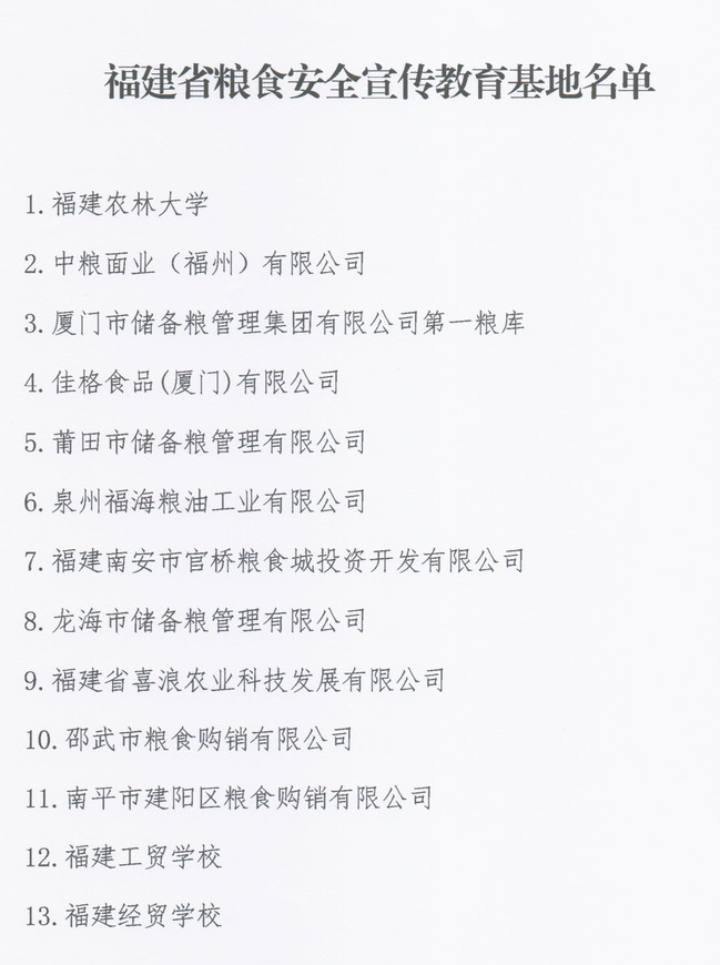 “福建省粮食安全宣传教育基地”名单