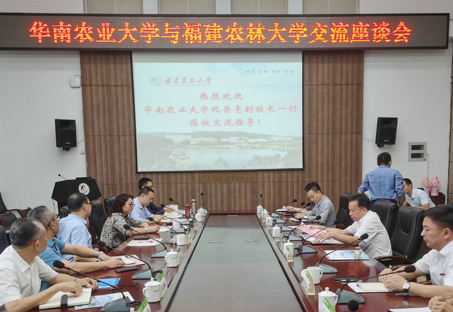 10月13日,华南农业大学副校长仇荣亮一行来校考察交流,校长兰思仁、副校长郑宝东会见客人一行, 双方进行了亲切交流。