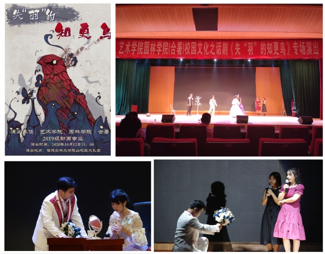 近日,艺术学院园林学院在旗山校区大报告厅举行校园文化之话剧《失“羽”的知更鸟》专场演出。学院党委书记陈为德、院长张飞萍、学院党委副书记曾海滨与校区师生一同观看了演出。