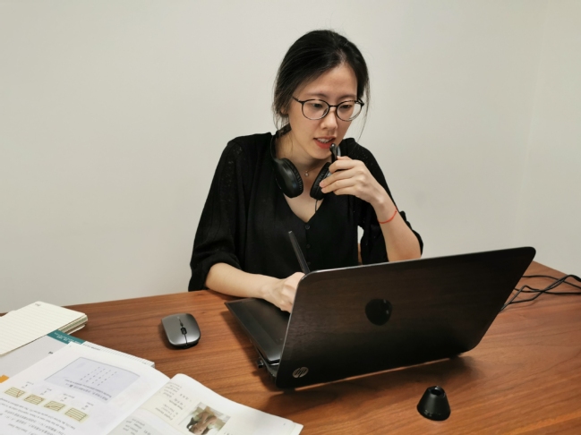 对外汉语老师雷妤通过网络向境内外学生教授汉语