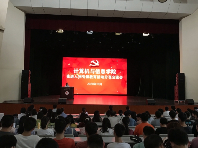 10月17日下午,计算机与信息学院在校大礼堂举行2020级新生先进人物引领教育活动分享交流会。学院党委副书记(主持)张金山、院长陈日清与学院新生班主任、辅导员以及2020级全体新生共同参加了本次交流会。大会由学院党委委员廖云茜主持。