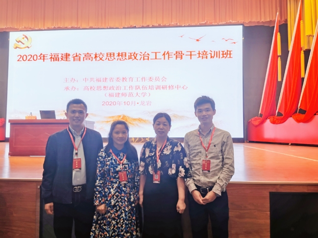 10月16日,由中共福建省委教育工委主办,高校思想政治工作队伍培训研修中心(福建师范大学)承办的2020年福建省高校思想政治工作骨干培训班在古田干部学院举行,全省高校马克思主义学院院长(思政部主任)、思政课教师、辅导员共400余人参加此次培训。马克思主义学院副院长李宝艳、温福英老师、罗贤宇老师、林锋老师参加此次培训。