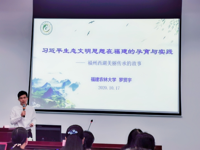 10月17日上午,在马克思主义学院院长论坛上,李宝艳教授作了《思政课“一主三辅”教学模式创新》的主题发言;在“形势与政策”课“讲好中国故事·上好思政课程”教学论坛上,罗贤宇老师作了《习近平生态文明思想在福建的孕育与实践——福州西湖美丽传承的故事》的示范教学,他们的精彩发言与授课,受到了与会老师的高度认可。