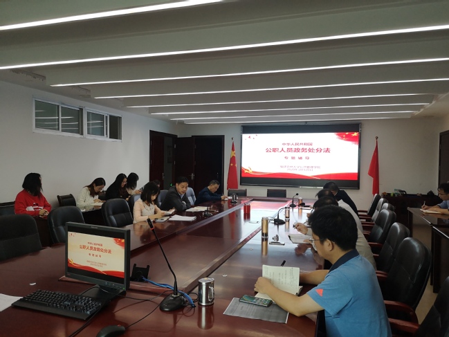 10月20日上午,公共管理学院党委召开理论中心组学习(扩大)会,专题学习《中华人民共和国公职人员政务处分法》(以下简称《政务处分法》),学院党委理论中心组成员、科级干部、辅导员、行政管理人员参加学习会,学院党委书记曾起郁主持会议。