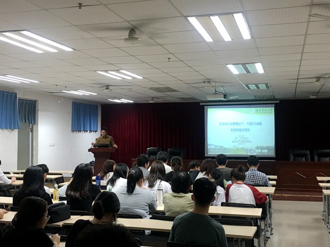 10月5日,计算机与信息学院院长陈日清教授在田家炳楼C413教室作了题为《在全球化背景推动下,中国5G战略实现跨越式领先》的新一代信息技术专题讲座,2020级全体研究生和2017级网络工程专业学生参加了本次讲座。