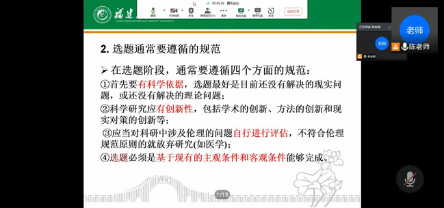 10月17日,资源与环境学院通过线上方式举办主题为“科学道德与学风建设”的学术讲座。讲座由校学生处陈潜副教授担任主讲,学院研究生与本科生线上参加讲座。