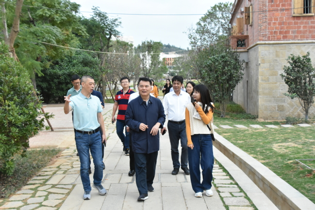 10月20日,校党委书记严金静、副校长郑宝东一行到晋江调研,深化校地合作、助力乡村振兴工作,晋江市副市长张汉杰陪同调研。