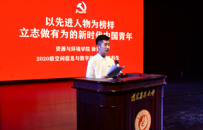 资源与环境学院2020级空间信息与数字技术专业本科生徐菁铧表示:要向先进人物看齐,以先进人物为榜样,学习他们身上的宝贵品格和崇高精神,并牢牢地把个人发展与祖国前途联系起来,以舍我其谁的气概,勇立潮头,敢于追梦、敢于圆梦,善谋实干、善做善成,成为走在时代前列的奋进者、开拓者、奉献者。