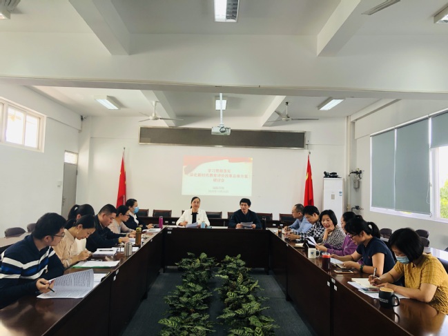 10月26日下午,国际学院在明北附303会议室召开学习贯彻《深化新时代教育评价改革总体方案》(以下简称《总体方案》)研讨会,学院领导班子成员、党委委员、党支部书记、系部主任、科级干部和辅导员参加学习。会议由院党委书记张华英主持。