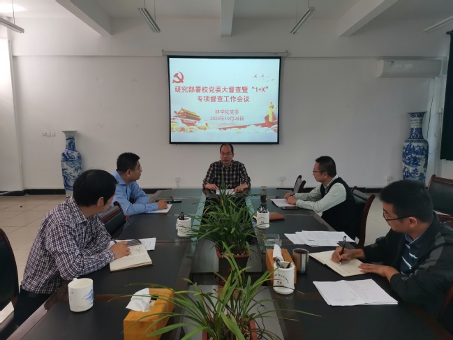 10月28日上午,林学院党委在诚智楼A-206会议室召开贯彻落实习近平总书记教育重要论述精神大督查暨“1+X”专项督查工作会议。学院党委书记蓝天水主持会议,党政领导班子成员参加。