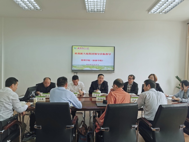 10月30日上午,管理学院与新大陆集团就“共建智慧商业研究院”产学研合作事宜于经管楼311会议室召开座谈会。上海新大陆翼码科技总裁杨海川,北京新大陆教育副总经理周洪耀、校企合作总监李玉龙、产品经理孙东升,管理学院党委书记张开晃、院长苏时鹏、院党委副书记陈建辉、副院长石德金、坚瑞及教师代表参加此次座谈会,会议由坚瑞主持。