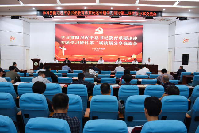 11月2日下午,我校在禧强楼学术报告厅召开学习贯彻习近平总书记教育重要论述专题学习研讨第二场校级分享交流会,校领导及中层干部代表围绕“培养担当民族复兴大任的时代新人——坚持把立德树人作为根本任务”这一主题,结合自身学习和工作实际分享了学习体会。校党委书记严金静主持会议并讲话。校党委副书记、校长兰思仁,校党委副书记庄祥生、曾华平,校纪委书记邱应龙,校党委常委、副校长黄炎和,副校长郑宝东出席会议。